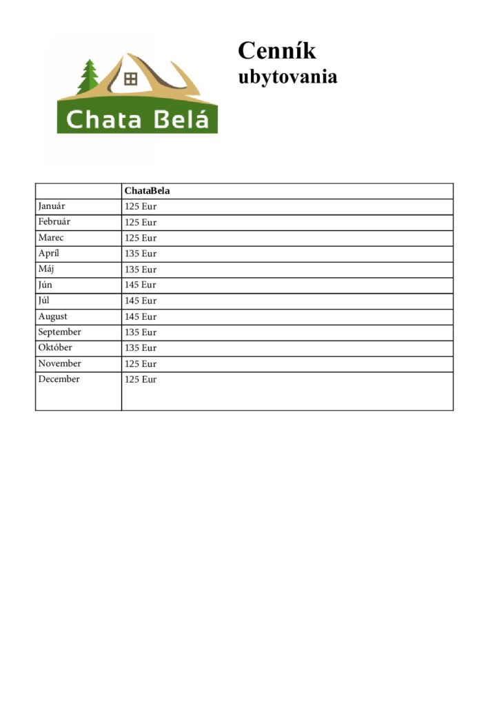 chata-bela-cennikPridaj komentár Zrušiť odpoveďVaša e-mailová adresa nebude zverejnená. Vyžadované polia sú označené *Komentár Meno * Email * Adresa webu Uložiť moje meno, e-mail a webovú stránku v tomto prehliadači pre moje budúce komentáre.